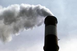 Mercury and other air-borne poisons emerge from the stack of a coal-fired energy plant. A U.S. Department of Energy photo.