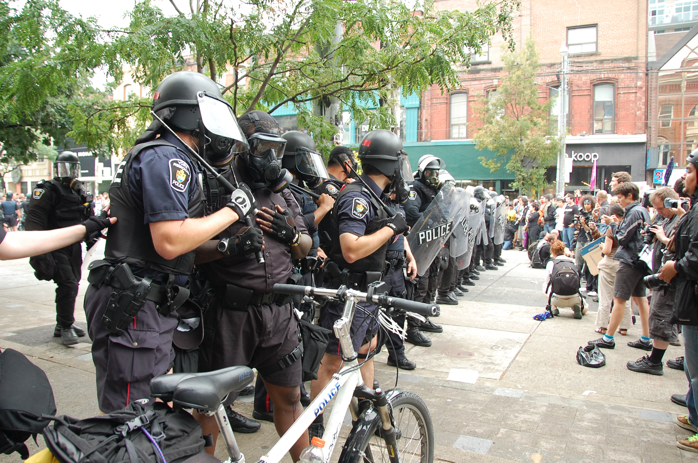 Meanwhile, in the streets of Toronto, no violence to persons has been perpetrated by any protesters, legitimate or not. The same is increasingly shown not to apply to the police.