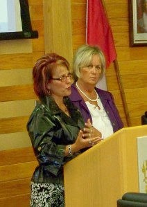 Niagara Health System CEO Debbie Sevenpifer and boar chair Betty Lou Souter stress to regional councillors that "enhancing quality care" in area hospitals is "a key organizational priority." Photos by Doug Draper.