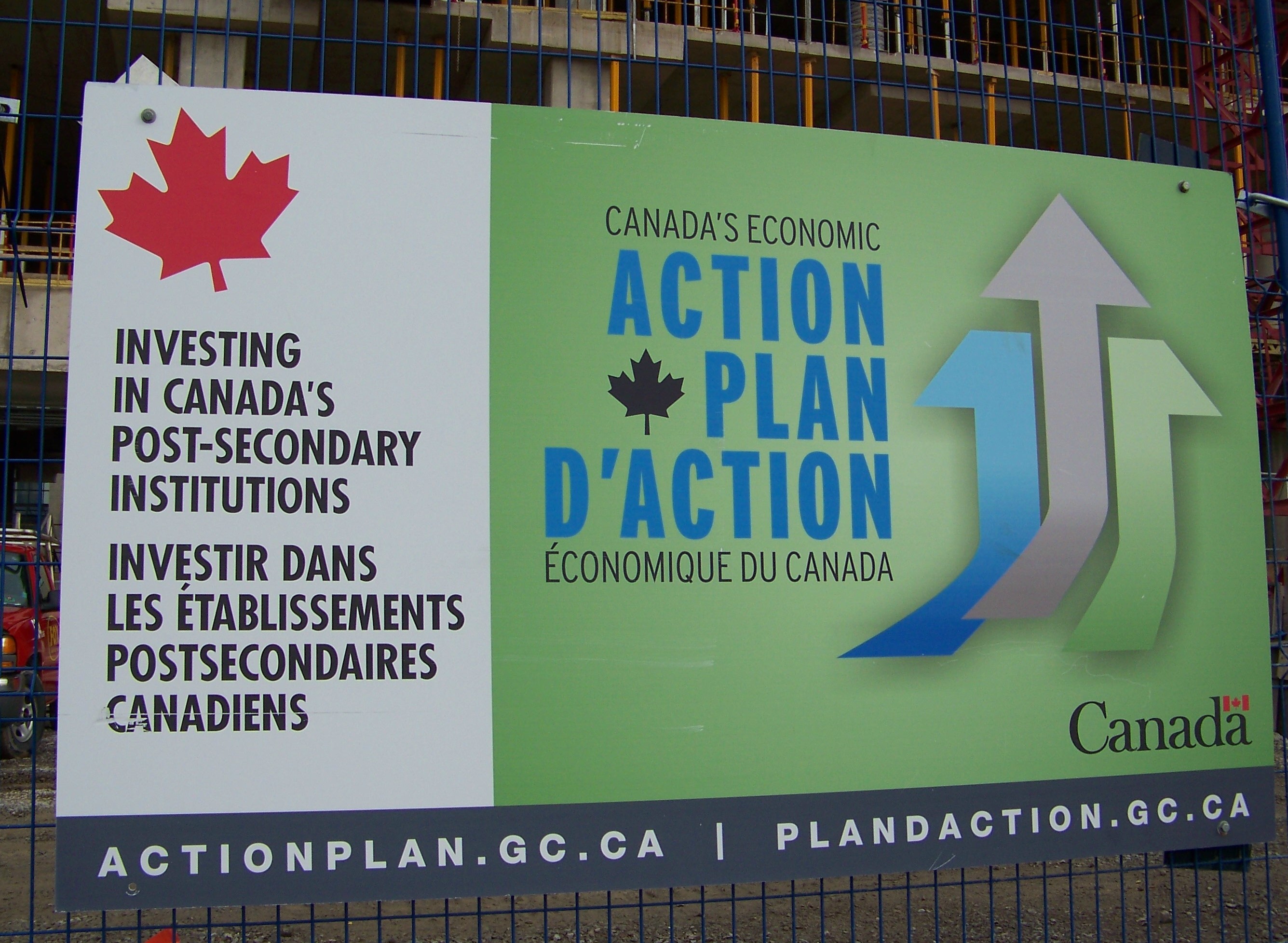 This federal 'Action Plan' sign lines a main road to the parking lot of Brock University where our taxes are contributing to the building of new facilities there.