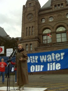 That was the resounding theme at the “Our Water, Our Lives” rally held at Queen’s Park last Thursday afternoon. Much respect goes out to Maude Barlow, The Council of Canadians, Earthroots, STORM Coalition, The Canadian Waterkeeper Alliance, and everyone who made it out to the rally, on what was a very damp and dreary day in Toronto.