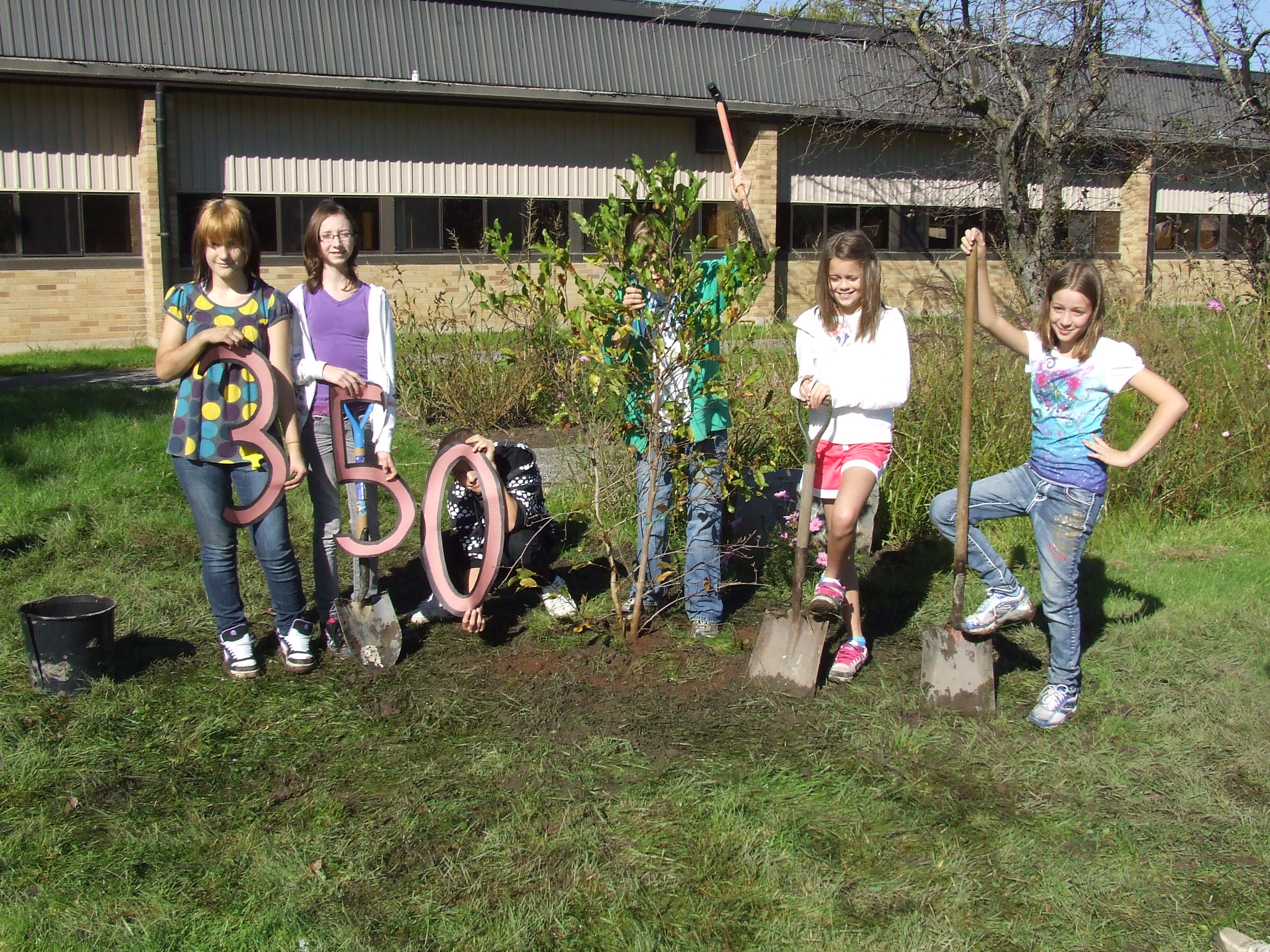 Students at Gordon Public School in Welland fight climate change by planting a magnolia tree donated by Welland 10-10-10.