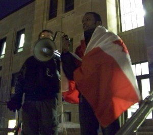 Literally wrapped in a Canadian flag, Ahmen went on to tell those at the rally that “all (the Egyptian people) want are the same opportunities for peace and for freedom of speech that we have here in Canada.” During a brief interview with Niagara At Large, he went on to add that “Canada is a truly democratic country and we want the Canadian government to say that it sides with the people of Egypt and does not side with the dictator (Hosni Mubarak). Please Canada. Don’t stay neutral.”