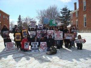 We held signs showing the graphic results of skinning animals, and provided literature to urge the public to rethink their position towards the fur industry.