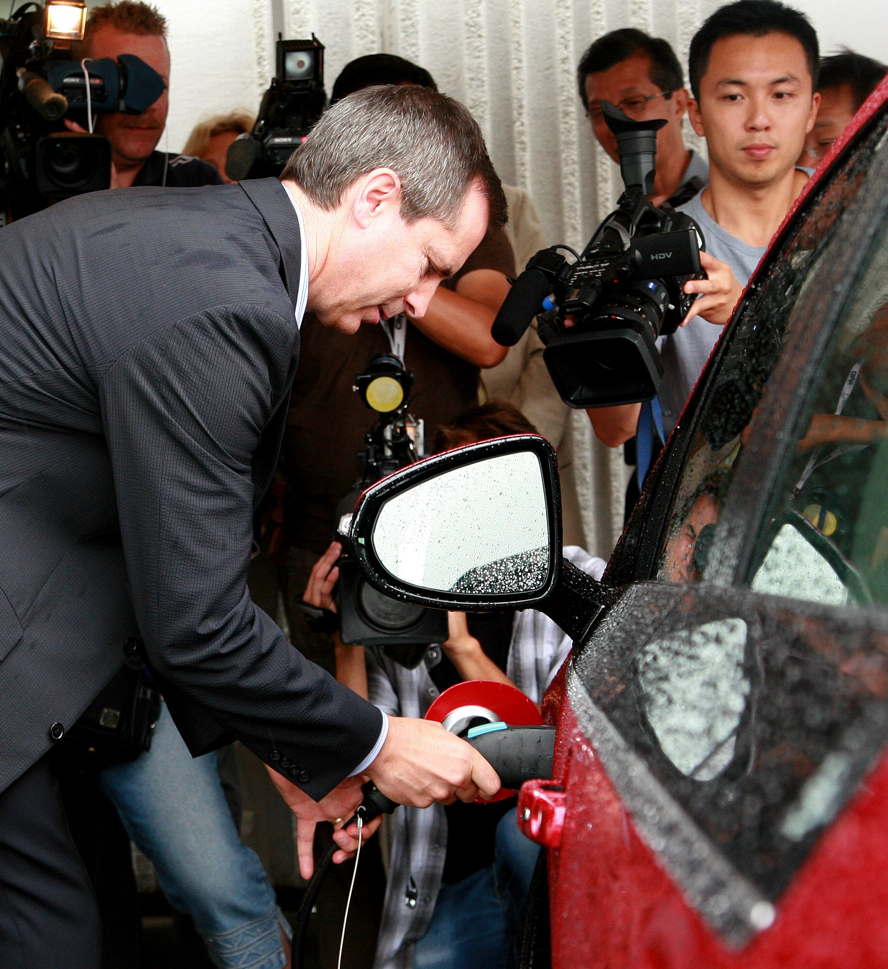 Ontario Premier Dalton McGuinty recharges an electric car at a charging station in Markham this August 9.