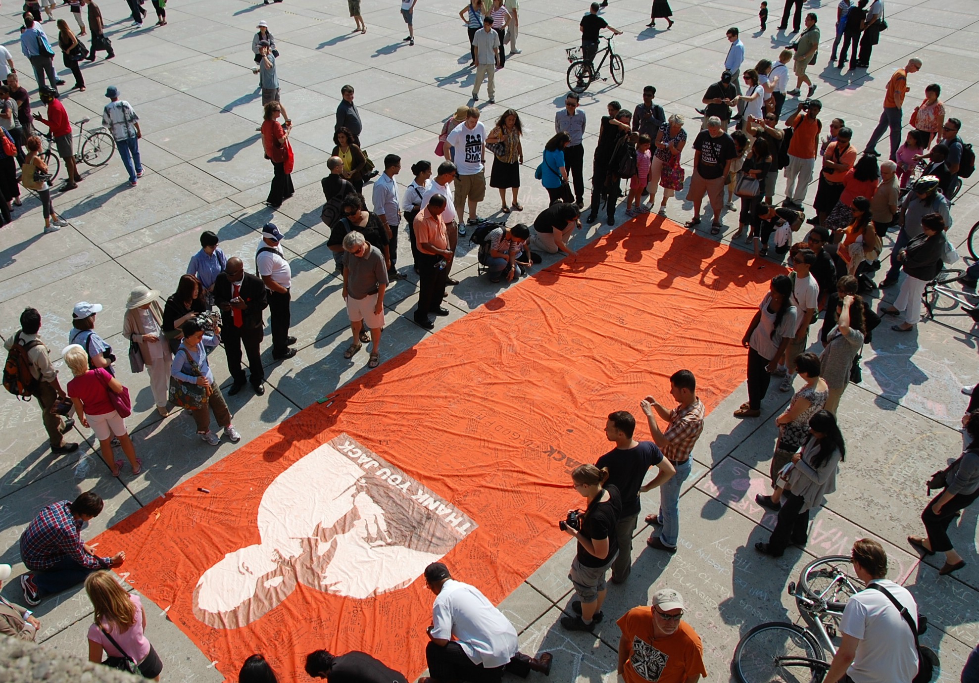 On this day – August 27, 2011 – of Jack Layton’s funeral, Niagara At Large is posting the following images taken in recent days by Niagara news photographer Joanne McDonald outside Toronto City Hall where thousands came to pay tribute to Canada’s late Opposition Party leader .