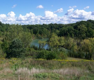 View of Twenty Mile Creek valley and Niagara Escarpment beyond from Rotary Park