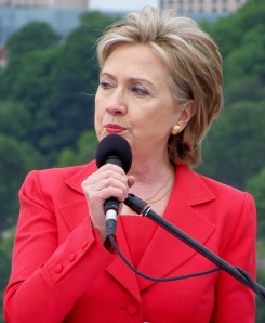 Hillary Clinton stands on Rainbow Bridge to announce plans to revise Canada/U.S. Great Lakes Water Quality Agreement. File photo by Doug Draper