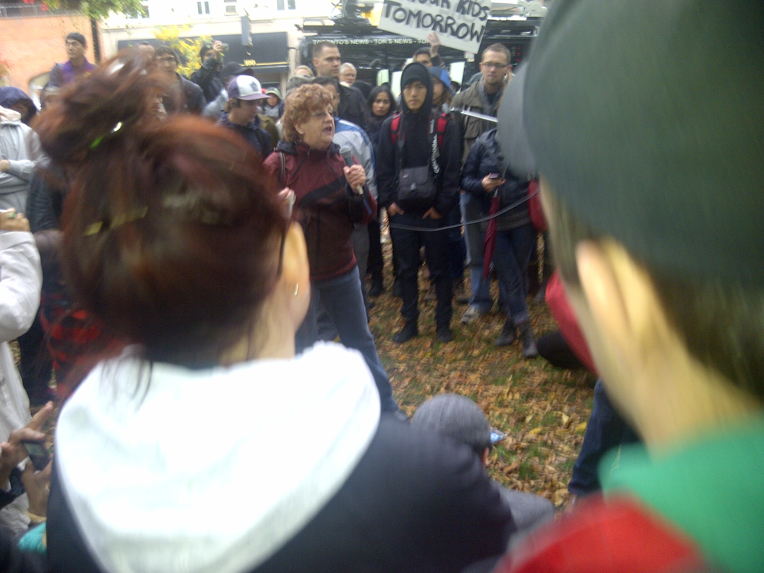 Niagara's Fiona McMurran telling it like it is at the 'Occupy Toronto' railly. Photo by Saleh Waziruddin.