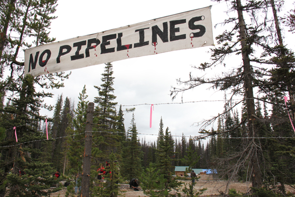 A banner protesting plans for Northern Gateway pipeline from Alberta tarsands through native lands. Photo from Council of Canadians website.