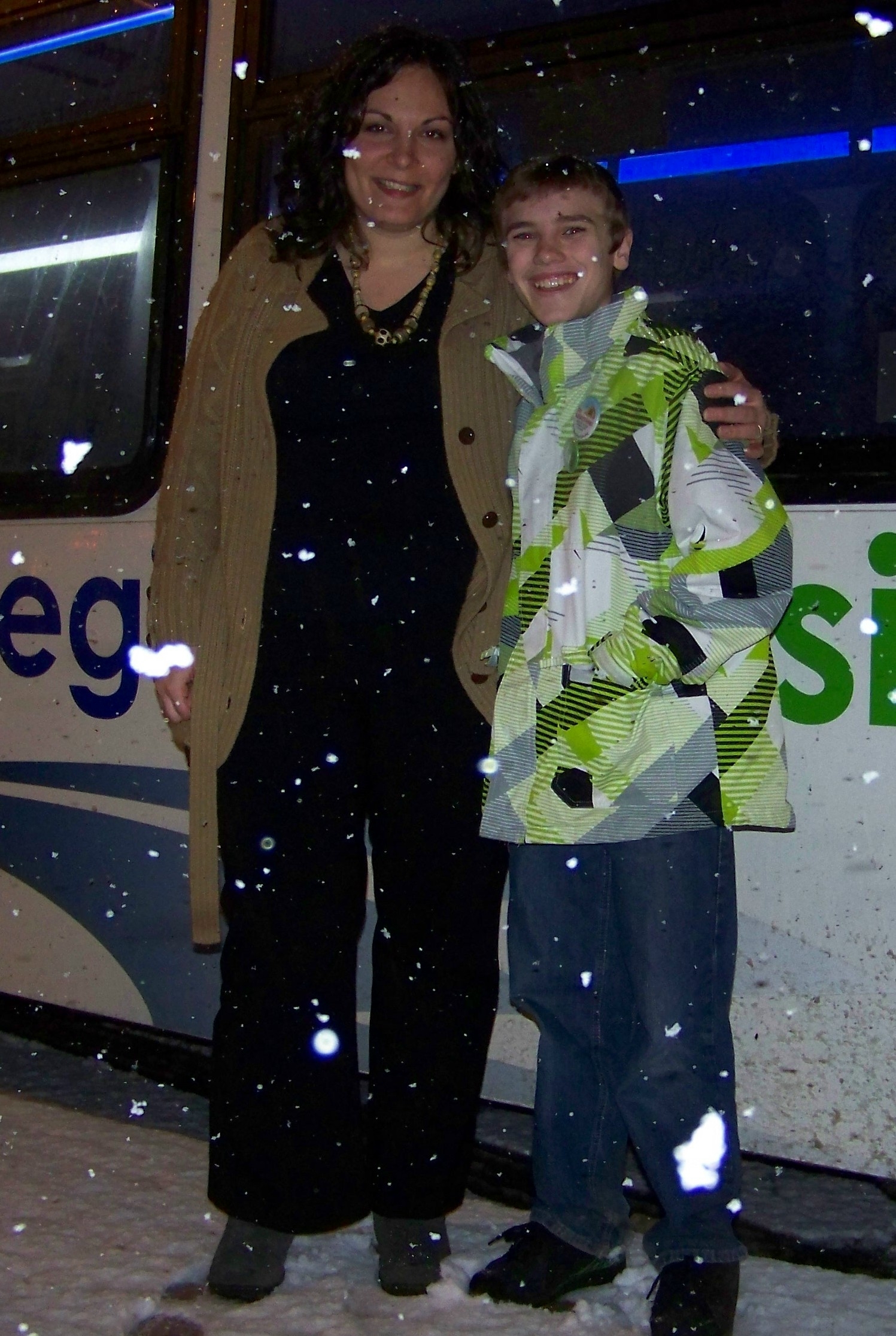 Jennifer with a young pal of hers named Wesley Prankard, a young activist and advocate for Native peoples’ quality of life, who led a “meeting on the bus” this past winter with Jennifer. He can be reached at http://northernstarfish.org/tag/wesley-prankard/ . File photo by Doug Draper.