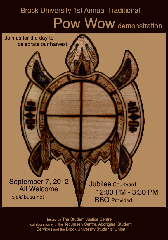 (One of the most community active student groups at Brock University is the Student Justice Centre which engages in many social justice issues, not just on campus, but across the province of Ontario and country. You might want to check out this Pow Wow and meet them, if not join their ranks. In the meantime, Niagara At Large is pleased to post this information from this dedicated group of campus activists.)