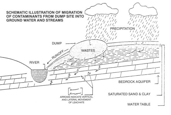 A diagram of the Hyde Park dump above the Niagara River gorge in Niagara County, New York and the fractured rock that can deliver its poison to the river and Lake Ontario.