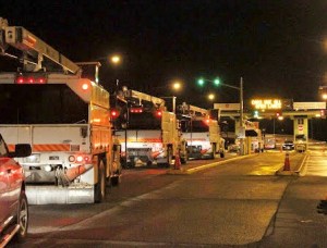 Ontario hydro trucks line up at border, on their way to hurricane-stricken regions of northeastern U.S. – Image from Hydro One website