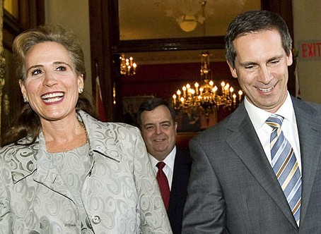 Ontario’s Premier Dalton McGuinty, right, smiles with Sandra Pupatello, who became the new minister of international trade and investment, after being sworn into the cabinet by Premier McGuinty on Thursday, Sept. 18, 2008 in Toronto. THE CANADIAN PRESS/Nathan Denette