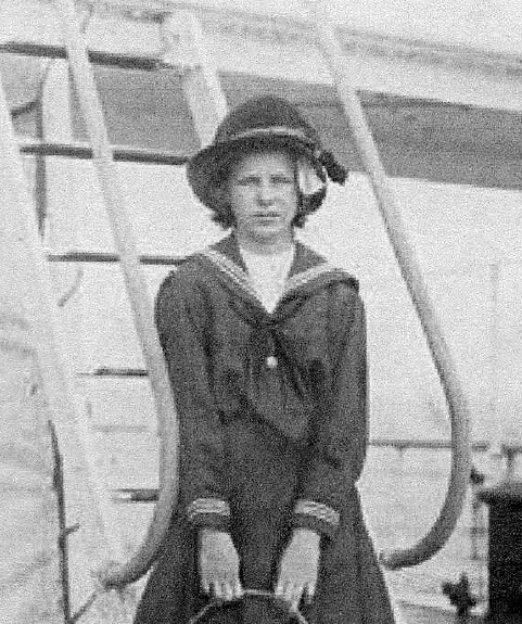 Madeleine Mellenger (in some Titanic-related accounts the last name is spelled Mellinger) shown here, returning to England four months after her harrowing experience on the Titanic. A few years later she and her mother Elizabeth would settle in Canada where they made roots in Ridgeway, Ontario. Image courtesy of Linda McKellar.