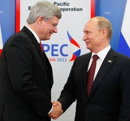 “Stephen Harper rips into Vladimir Putin’s energy-based “one dimensional” economy, his pitiful failures in governance and transparency of information, his politics of division, his alienation of youth, and his failure to work together with his opponents.”