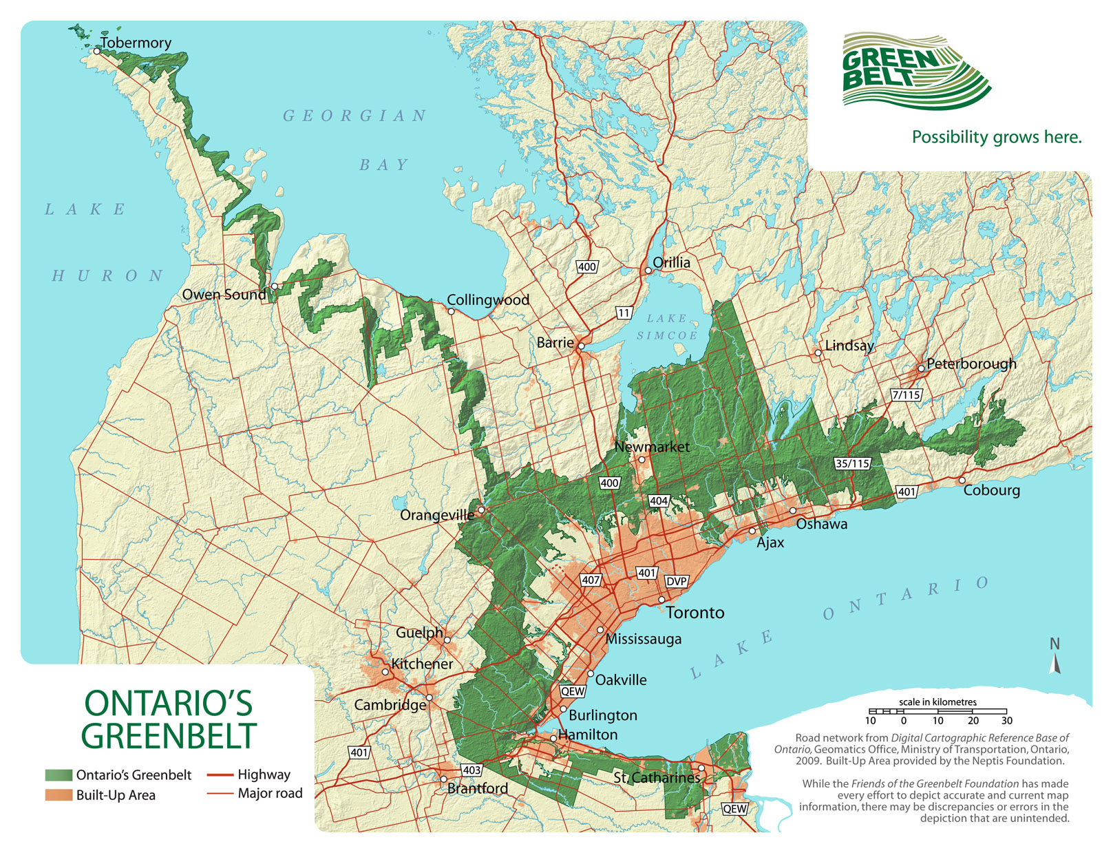 The green on the map is Ontario’s internationally honoured Greenbelt area. You can cllck on the image of this map to view it full screen.