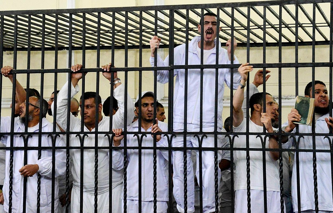 Like a zoo animal, Mohamed Fahmy is packed into an Egyptian jail like this while Canadian Prime Minister Stephen Harper fiddles.