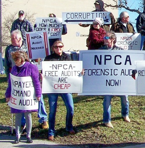 Niagara citizens recently demonstrate for full audit at NPCA headquarters. Photo by Doug Draper
