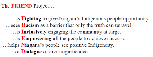 Real Indigenous people shared deeper insights into community, education, the past and the future available for free listening on the Fort Erie Native Friendship Centre’s website ( http://www.fenfc.org/friend#allan ). Even reading an article like this on a great site like Niagara at Large is an important positive step.