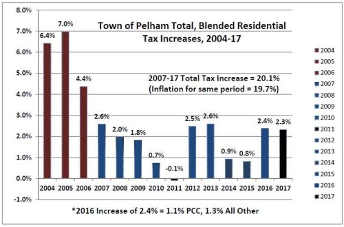 And, this 20.1% includes the equivalent of approximately 1.1% (in 2016) to fund the Pelham Community Centre. And, it also includes our annual increases for improved infrastructure – approximately 1.7% over the last three years of this 20.1% was for increased sustainability – supporting new roads, pipes, and other capital improvements.