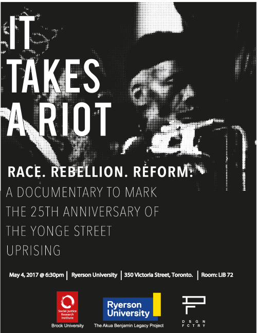The film, It Takes A Riot: Race, Rebellion, Reform, will be released in a screening Thursday, May 4 at 6:30 p.m. at Ryerson University. The screening will take place in room LIB 72. It’s free and open to the public, but space is limited.