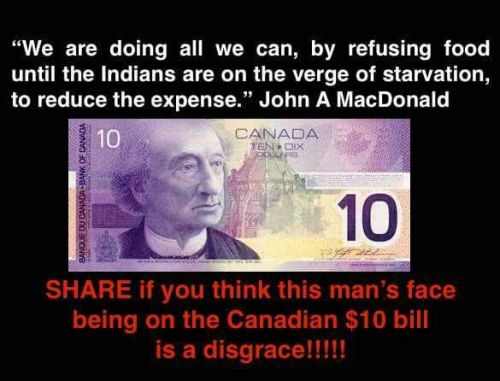 I find myself feeling particularly angry about a public school system in this country that brainwashed young minds with negative stereotypes of indigenous peoples and taught us – I believe deliberately – virtually nothing about the racist and even genocidal policies of Canada’s first prime minister, John A. MacDonald, and so many other government leaders, or about the terrible suffering generations of indigenous people endured in residential schools or in concentration camps we preferred to call ‘Indian reserves.”
