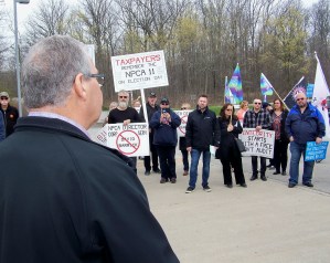 One of many public demonstrations- this one last year in front of the NPCA offices in Welland – fueled by concerns over how the Conservation Authority does business with millions of our municipal tax dollars – this one last year in front of the NPCA offices in Welland. Photo by Doug Draper