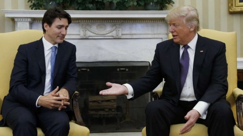 Canada’s Prime Minister Justin Trudeau with Trump at the White House. Is it just me or does it look like Justin isn’t much looking forward to shaking that guy’s hand.