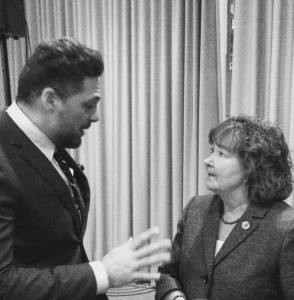 Niagara Peninsula Conservation Authority board chair and Fort Erie regional councillor Sandy Annunziata meets Ontario Natural Resources Minister Kathryn McGarry earlier in 2017 at a conference in the province. So far, McGarry has taken no action in the face of numerous calls from Niagara area citizens, municipal politicians , union representatives and Niagara area MPPs  to clean house at the NPCA