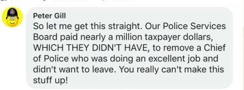 Let’s also note forget that $870,000 out of the police budge was used to pay for a retirement package for former Niagara Regional Police Chief Jeff McGuire, who left the force last year, about three years before the end of his contract. He took this retirement package when, contrary to recent suggestions from members of the police board, that he wanted to go, he recently said in a statement that he would have stayed.