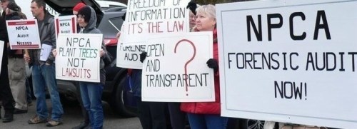 Protesters holding signs demanding openness and transparency have continued to dog the NPCA in recent years.