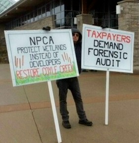 Protesters holding signs demanding openness and transparency have continued to dog the NPCA in recent years.
