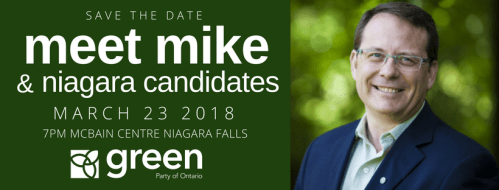 Mike Meets Niagara 2018 – An Evening with Mike Schreiner & Niagara Green Candidates – Friday, March 23, 2018 from 7:00 PM – 9:00 PM