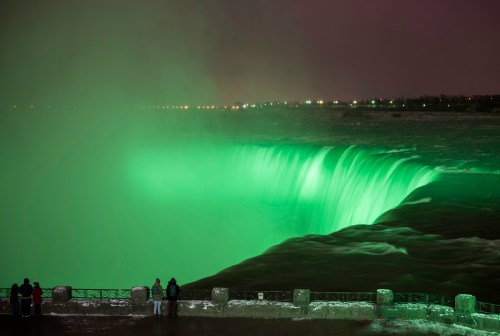Both the American and Canadian Horseshoe Falls will be bathed with vibrant green light for 15-minute intervals at the top of the hour from 9 p.m. to 1 a.m., joining numerous prominent world icons such as the Sydney Opera House, Empire State Building, the Christ the Redeemer statue in Rio de Janeiro, the London Eye, the Colosseum in Rome and the Leaning Tower of Pisa, to name but a few.