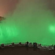 Both the American and Canadian Horseshoe Falls will be bathed with vibrant green light for 15-minute intervals at the top of the hour from 9 p.m. to 1 a.m., joining numerous prominent world icons such as the Sydney Opera House, Empire State Building, the Christ the Redeemer statue in Rio de Janeiro, the London Eye, the Colosseum in Rome and the Leaning Tower of Pisa, to name but a few.
