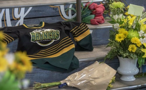 This special illumination is timed to coincide with this evening’s gathering of members of the Humboldt community to mourn at the home arena of the Humboldt Broncos, junior hockey team, following the crash which tragically took the lives of 15 people and injured another 14 members of that community.