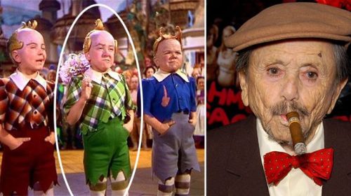 His name was Jerry Maren and he played one of three members of the “Lollipop Guild” who sang a welcoming song to Dorothy (Judy Garland) as he – the one in the centre dressed in green – handed her a giant lollipop.