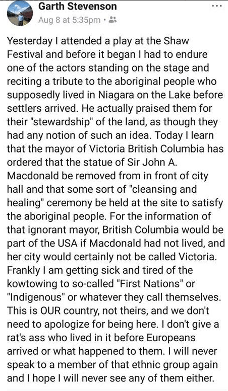 Open Letter to Brock University in response to the recent anti-Indigenous social media activity of Professor Emeritus Garth Stevenson.