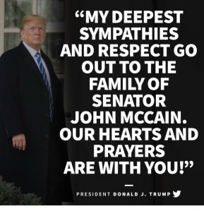 To watch Trump respond to reporters’ questions in the White House this August 27th about the death of John McCain, click on –