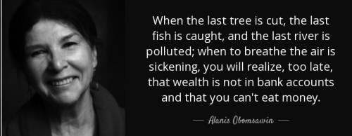 The answers to that can be found that latest report from Canada’s insurance industry and in the following words of wisdom from Alanis Obomsawin, a Canadian American filmmaker, singer and activist, who sums it all up this way –
