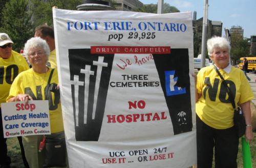 Going on a decade ago now, residents in the Fort Erie area rallied over and over again to save that community’s hospital from having its services slashed, but the then Liberal government of Ontario and its regional agent, the Niagara Health System, proceeded with the slashing anyway. Linda McKellar, the author of this commentary, was among those rallying to save this hospital. File photo by Doug Draper