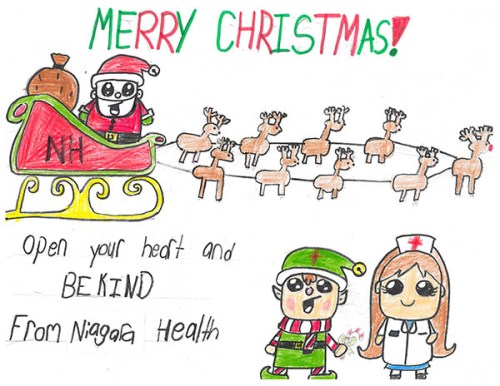Open Your Heart and Be Kind is the message on the joyful holiday drawing that will be the face of Niagara Health’s 2018 Holiday Greeting Card.