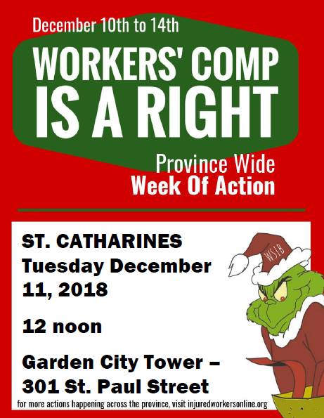 You Are Invited to Join a Rally for Workers’ Comp in Downtown St. Catharines this Tuesday, December 11th at Noon