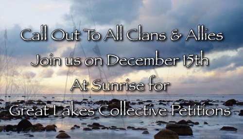 Biidaasige Josephine Mandamin and Waasekom invite All Nations to join us for Round 3 of the Great Lakes Collective Petitions on December 15th, 2018 at sunrise.