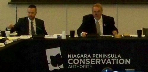 Hamilton NPCA board member James Kaspersetz, shown here at right, is censured by board for recent posting of anit-Muslim message on Facebook. David Barrick, now serving as the NPCA’s “acting CAO” is seated to the left of Kaspersetz.