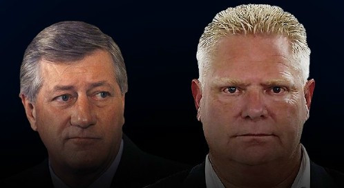 Ontario’s Doug Ford (right) picks up where his Tory predecessor Mike Harris left off with the municipal amalgamation bandwagon