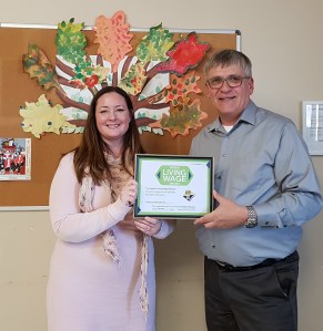 Glen Walker, Chair, Niagara Poverty Reduction Network presenting certificate to Alyshia Meredith, Owner/Founder. Person Centred Care Inc., Fort Erie.