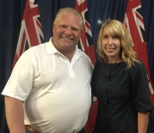 Ontario’s Tory leader (now Premier) Doug Ford last year with then Tory candidate April Jeffs, who lost in the Niagara Centre riding last June to the NDP’s Jeff Burch. Jeffs also served as mayor of Wainfleet and sat on the board of the Niagara Peninsula Conservation Authority until Niagara’s Regional Council appointed new NPCA board members late this past year.